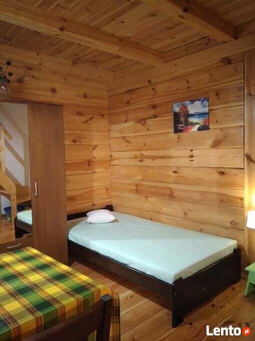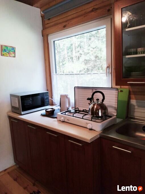 W domku na parterze: kominek, dwa pojedyncze wygodne łóżka, aneks kuchenny (z lodówką, kuchenką, mikrofalówką i podstawowym wyposażeniem); łazienka z prysznicem.